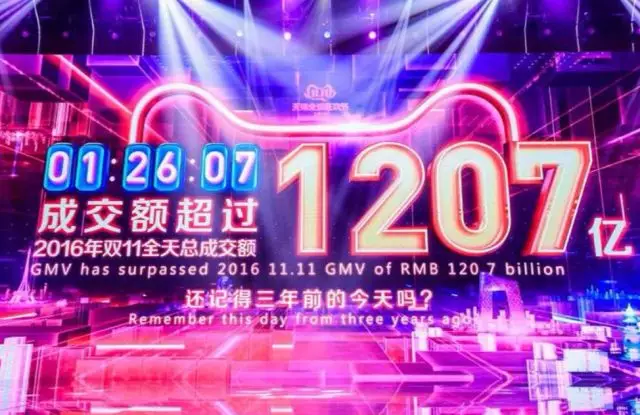 南方日報(bào)2019年11月11日訊 11月11日剛過1小時(shí)26分07秒,天貓雙11實(shí)時(shí)成交額達(dá)1207億元,超越2016年全天。去年,天貓雙11成交額抵達(dá)1207億用時(shí)8小時(shí)8分52秒,這也意味著,今年成交破1207億速度比去年快了近7小時(shí)。