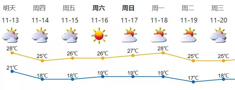 14日北風加大,沿海和高地最大陣風7級左右,15-17日晴天,風力減弱,晝夜溫差7~8℃。