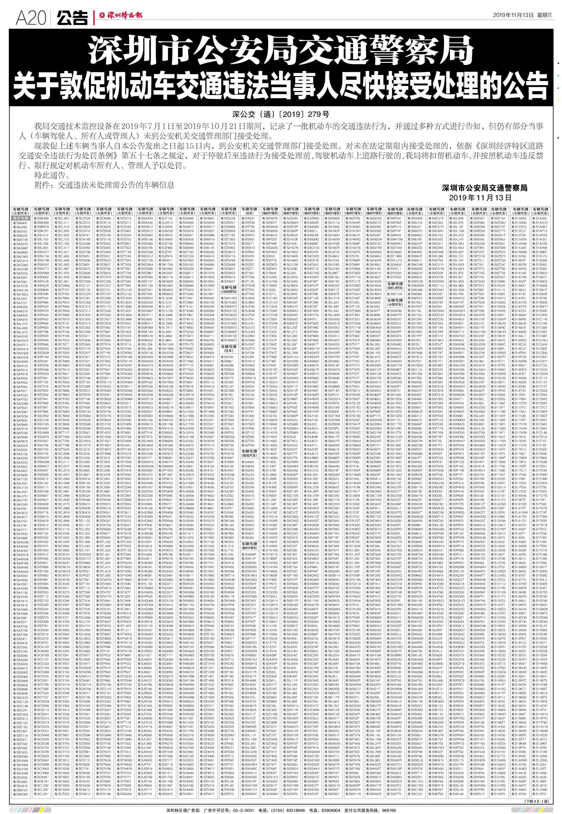 今年7月至10月初,全市機(jī)動車被“電子警察”抓拍交通違法行為1342781宗,深圳交警通過多種方式進(jìn)行交通違法行為告知,但截止至目前仍有部分機(jī)動車的非現(xiàn)場交通違法未及時處理。