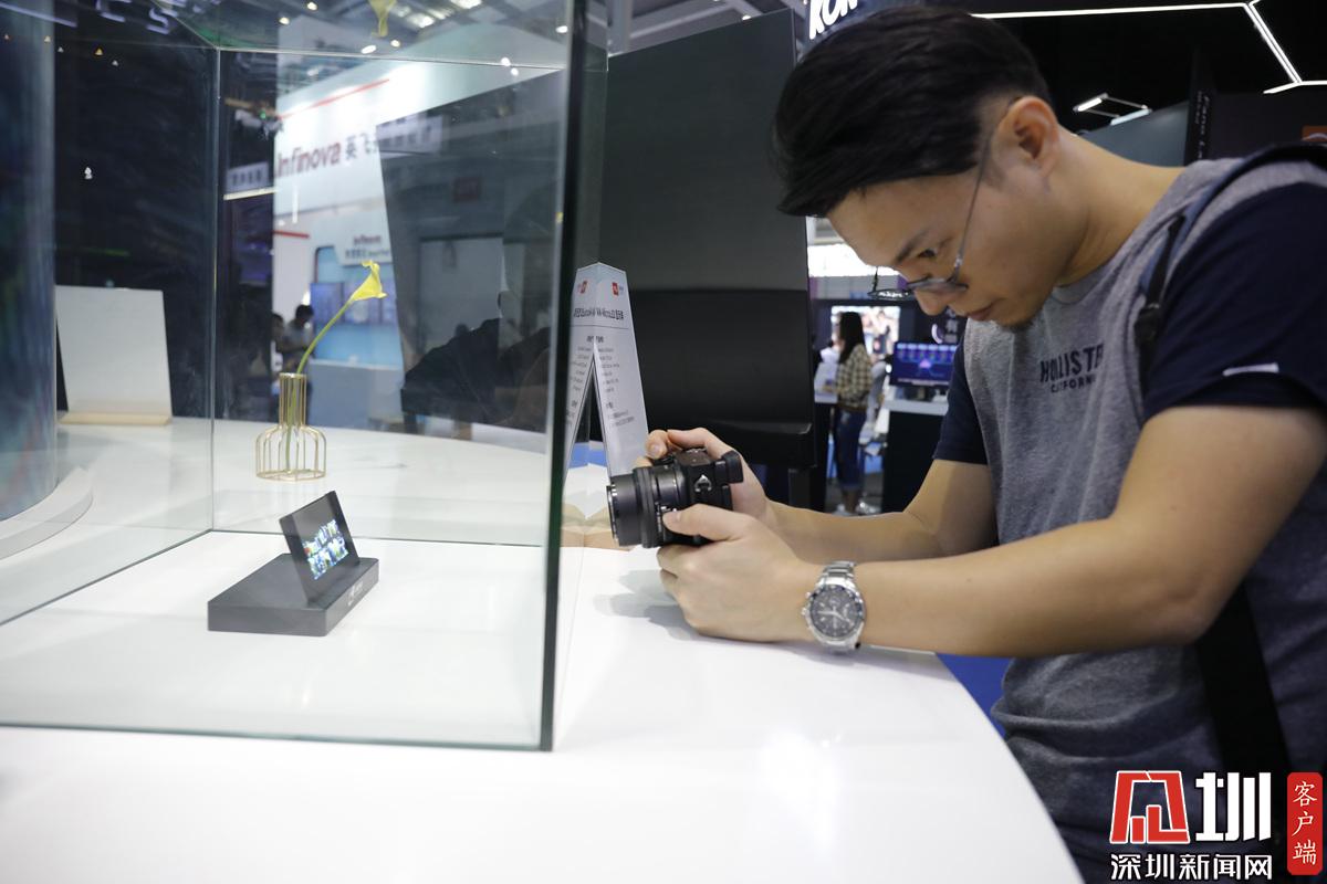 一位觀眾正在拍攝華星光電的AM-MicroLED顯示屏。