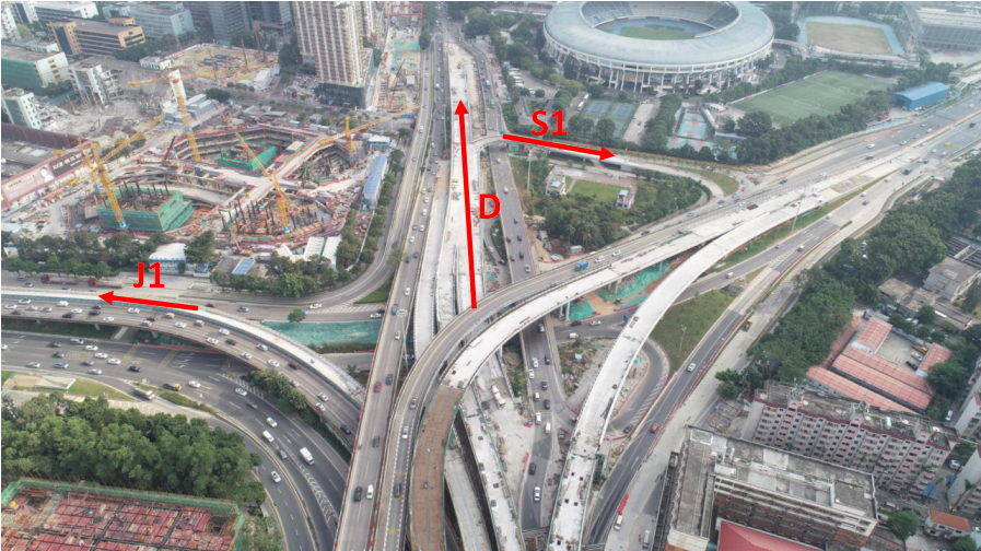 泥崗立交J1 (北環(huán)大道轉(zhuǎn)泥崗東路東行)匝道橋由三車道轉(zhuǎn)成四車道;泥崗立交D (北環(huán)大道轉(zhuǎn)上步北路南行)匝道橋由原來一條匝道橋新增至四條匝道橋,泥崗立交S1 (上步北路南行轉(zhuǎn)泥崗西路)匝道橋新增了兩條匝道橋, J1、D、S1匝道橋預(yù)計(jì)將于今年12月初開放通車。