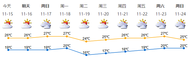 我市晴天間多云,空氣干燥;氣溫19-26℃;東北風(fēng)2-3級(jí);相對(duì)濕度40%-85%。