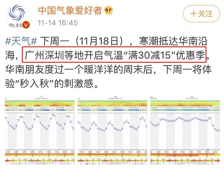 深圳開啟氣溫“滿30減15”