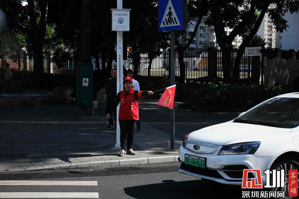 2019年11月22日,福田區(qū),一位正在斑馬線旁工作的義工。
