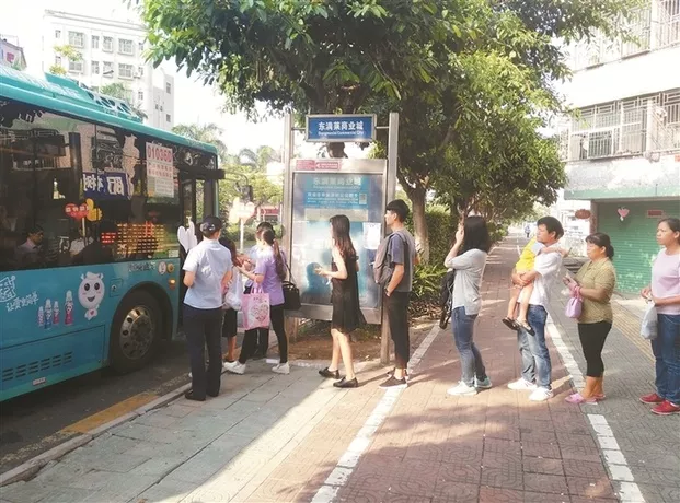 深圳有很多公交站臺雖然面對人多車少的現(xiàn)實,但乘車人自覺排隊,按秩序上車,在客觀上加快了公交車周轉(zhuǎn)的速度。有著“文明城市”稱號的深圳,在最易擁擠的地方,體現(xiàn)出了文明。