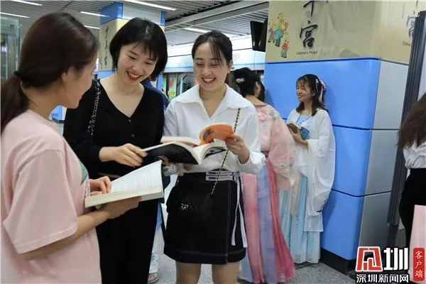 2019年11月17日下午,深圳地鐵2號線和3號線上,百余名熱愛讀書的市民朋友手捧書籍在列車行進(jìn)過程中安靜閱讀,不少乘客自發(fā)加入。據(jù)悉,活動由深圳地鐵集團(tuán)發(fā)起,聯(lián)合民間公益社團(tuán)“漢服深圳”,通過地鐵閱讀“快閃”這樣別出心裁的行為藝術(shù),旨在喚醒城市人群的閱讀意識,利用搭乘地鐵的碎片化時間學(xué)習(xí),或是在嘈雜與匆忙的情景下找到內(nèi)心平和,共同營造“書香地鐵”的閱讀氛圍。
