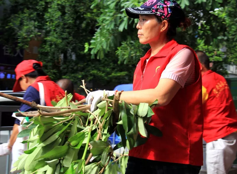 ▲“紅馬甲”清潔臺風(fēng)“山竹”過后的街道