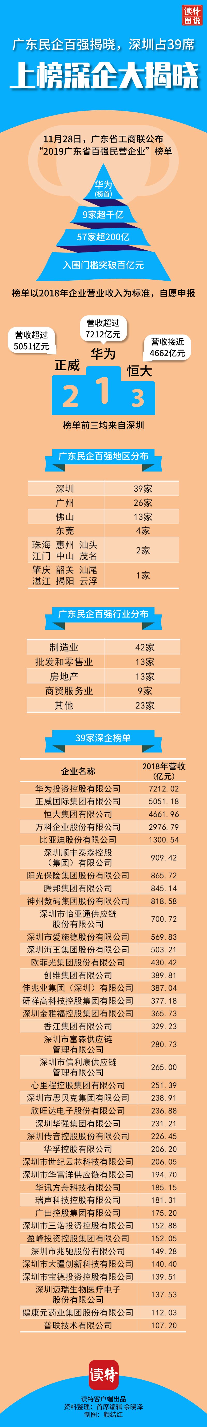 一圖讀懂|2019廣東省民企百?gòu)?qiáng)揭曉,深圳占39席!
