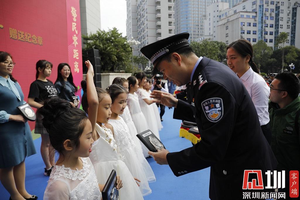 深圳市公安局領(lǐng)導(dǎo)為少年警隊(duì)授勛。