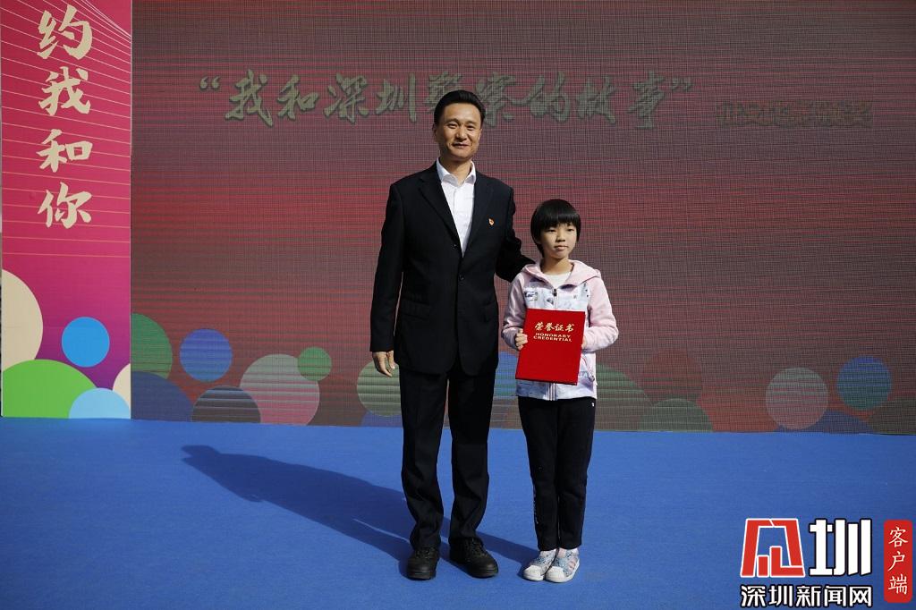 獲得“我和深圳警察的故事”征文比賽特等獎(jiǎng)的小朋友上臺(tái)領(lǐng)獎(jiǎng)。