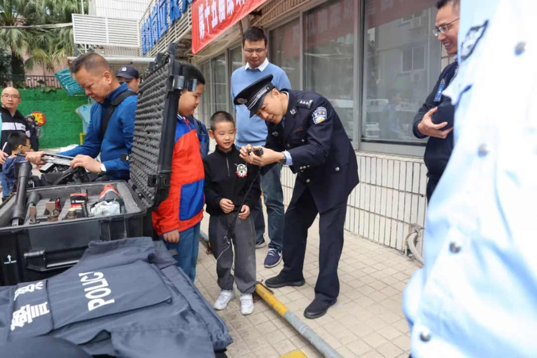 防暴頭盔、防爆盾牌、槍支警械、無人機、反恐車酷勁兒十足。大家興致勃勃地穿戴警用裝備,過一把警察癮,圓一回警察夢,做“圳”里最靚的仔!