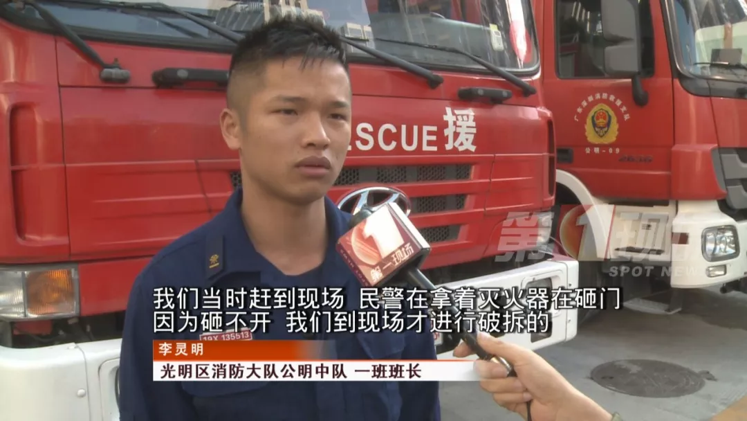 該戶人家用的是密碼鎖,可能是因?yàn)槭掳l(fā)緊急,再加上屋內(nèi)濃煙嗆鼻,女主人竟然一直說不準(zhǔn)房間大門的開鎖密碼,危急時刻,消防隊(duì)員及時趕到了現(xiàn)場。