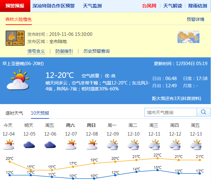 見(jiàn)圳客戶端·深圳新聞網(wǎng)2019年12月4日訊 深圳市氣象局預(yù)計(jì)4日仍然維持晴朗干燥天氣,白天舒適,早晚較冷。預(yù)計(jì)受“北冕”和冷空氣的共同影響,5日午后起北風(fēng)開(kāi)始加大,5-7日沿海高地和海區(qū)陣風(fēng)8-9級(jí),其中5-6日天色陰沉,有零星小雨,氣溫將創(chuàng)入秋以來(lái)新低;8日起風(fēng)力減弱,氣溫回升。