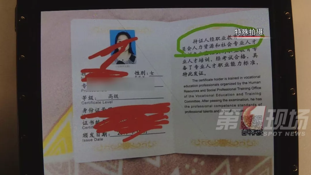 在詢問證書是哪里頒發(fā)時,工作人員說,國內其他城市這類證書分初級中級高級,要分別交錢考,她們一步到位,直接發(fā)高級證書,全國通用。