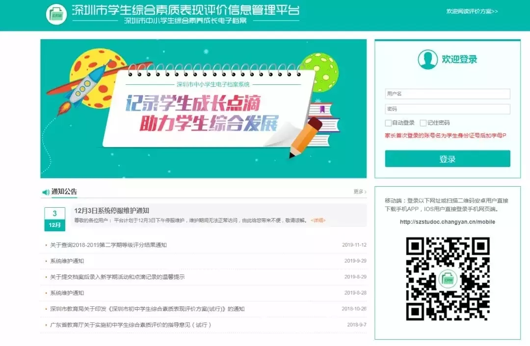 ▲深圳市學生綜合素質表現(xiàn)評價平臺截圖