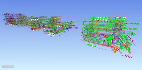 在施工準(zhǔn)備階段,優(yōu)化原設(shè)計(jì)圖紙,提前解決施工階段遇到的問題,實(shí)現(xiàn)BIM深化圖指導(dǎo)現(xiàn)場(chǎng)施工放樣及管道安裝,滿足規(guī)范及空間使用要求;施工實(shí)施階段,基于BIM深化模型輸出工程量清單,輔助材料管理人員物資采購管理,支架深化及輸出加工圖,推進(jìn)項(xiàng)目精細(xì)化管理。