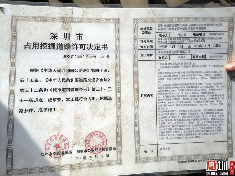 現(xiàn)場記者拍到的施工項目占道挖掘道路許可證。