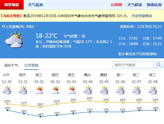 周二至周三深圳有冷空氣影響 周三最低氣溫降至14℃左右