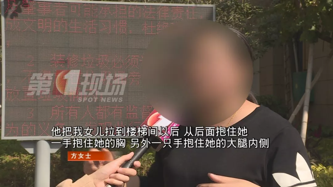 保安員把女兒拉進(jìn)樓道里后