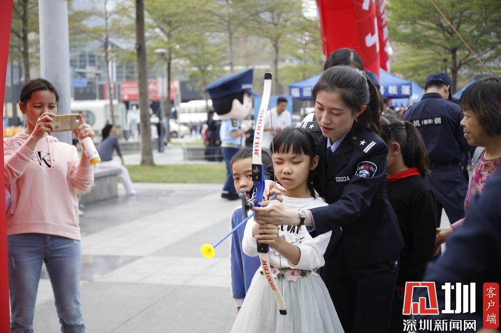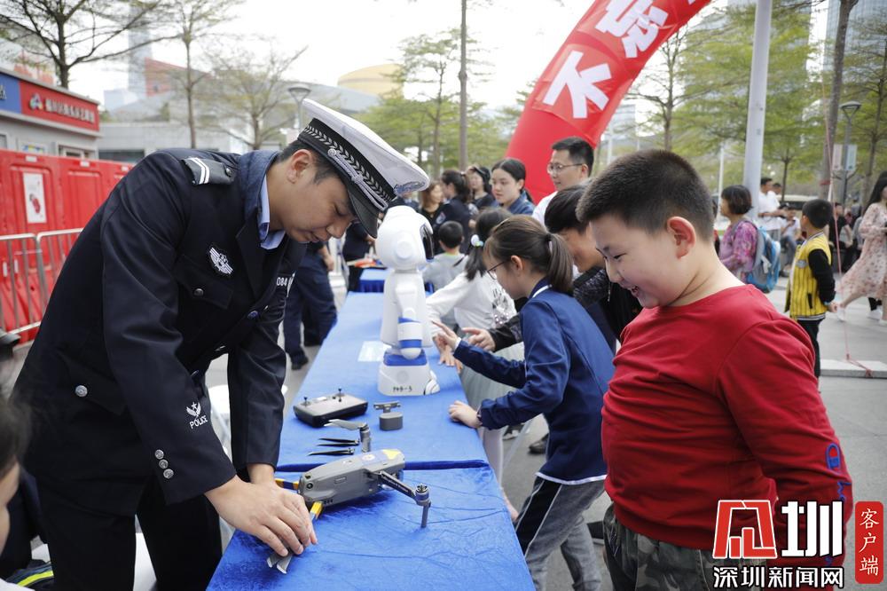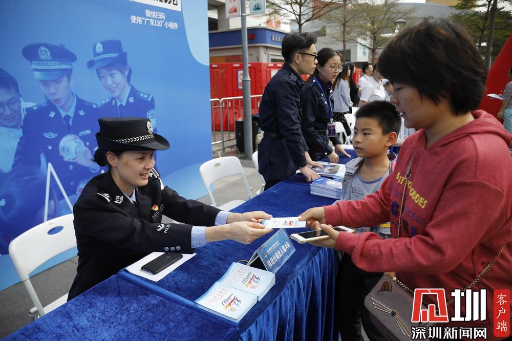 深圳公安民警現(xiàn)場發(fā)放宣傳材料。