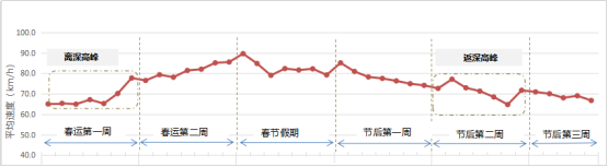 這兩周的高速公路運(yùn)行速度為春運(yùn)期間的最低水平。看圖: