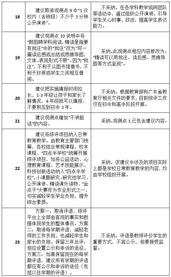 原標(biāo)題:最新進(jìn)展!深圳初中綜評(píng)新方案征集到34類(lèi)建議,其中19類(lèi)被采納或部分采納