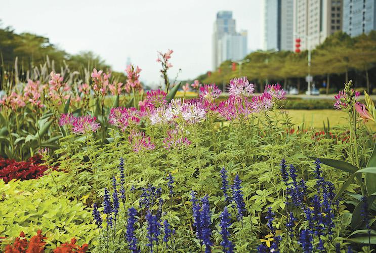 ▲花朵成片開放,引得很多市民拍照留影。