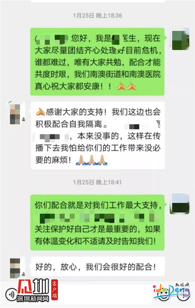 他們就是南澳人民醫(yī)院的醫(yī)療工作人員。在這次疫情中,市二醫(yī)院、新區(qū)醫(yī)療健康集團聯(lián)動,指導南澳人民醫(yī)院流動社康醫(yī)務人員積極落實大鵬新區(qū)關于社區(qū)“1+3”工作小組的工作部署,針對這11位武漢同胞的情況,工作人員馬上與他們建立了微信群,在線對他們核實了身份。