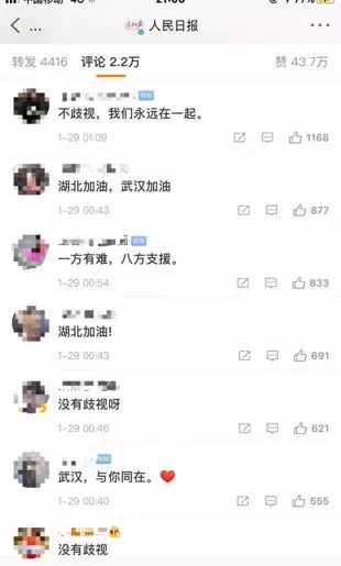 在武漢市委書記回應歧視湖北人的微博下面,