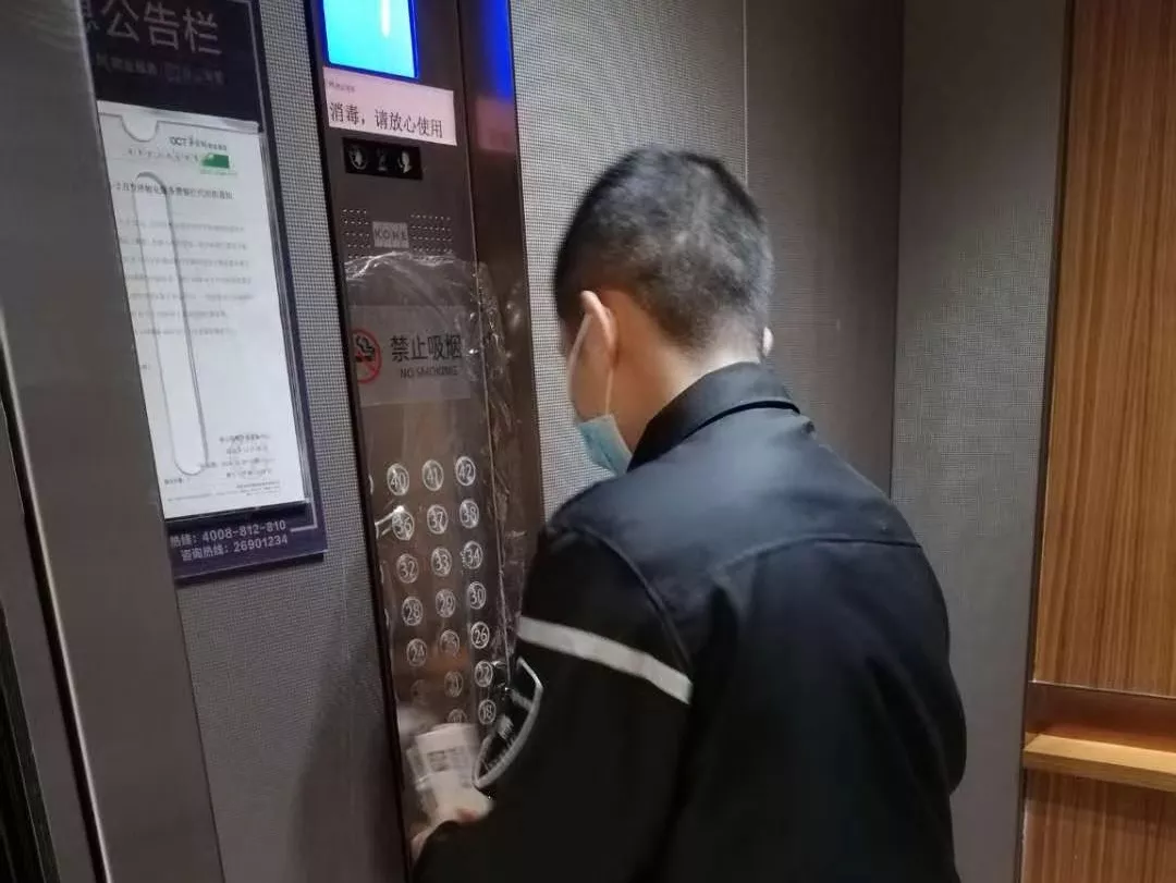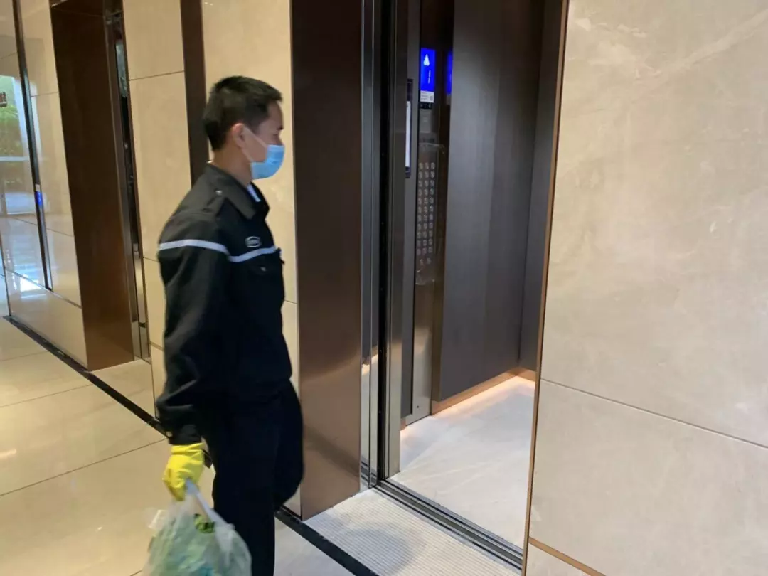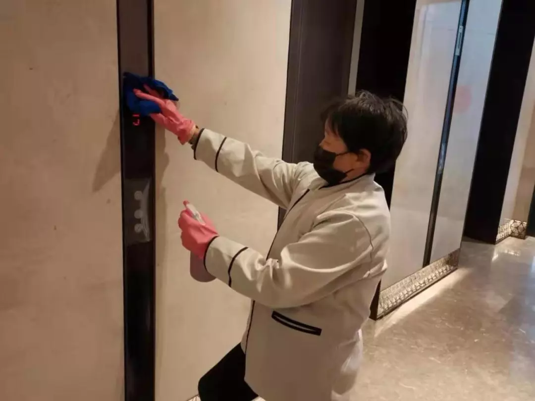 每天對(duì)小區(qū)公共區(qū)域大堂門把手、門禁對(duì)講機(jī)、電梯按鍵、大堂茶幾沙發(fā)等高頻接觸區(qū)進(jìn)行消毒及對(duì)轎廂按鈕定時(shí)更換保鮮貼膜。