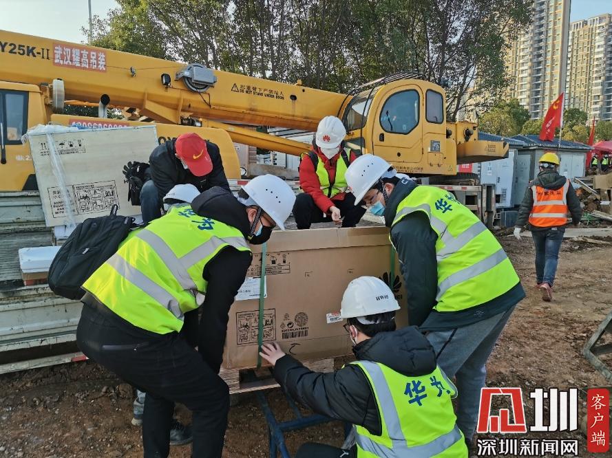 1月31日下午,華為網(wǎng)絡(luò)、視頻會議等設(shè)備緊急運輸進(jìn)場,準(zhǔn)備施工調(diào)測 。 (華為供圖)
