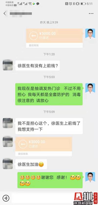 2日上午,寶安中醫(yī)院(集團)隔離病房工作的徐醫(yī)生,遇到了令他十分感動的事。他通過微信向房東交房租,房東問他是不是在防控前線工作,徐醫(yī)生以為房東怕傳染而嫌棄他,連忙向房東解釋自己做好了防護消毒,不用擔心,沒想到房東直接把房租退了回去,表示要支持徐醫(yī)生在前線工作,真是暖心??!