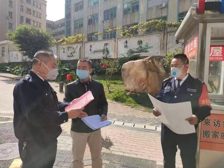 周尤(左二)到平湖轄區(qū)各小區(qū)開展疫情防控工作