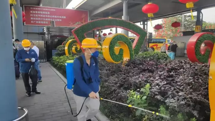 蛇口街道辦派專人對深圳灣口岸外圍重點防控區(qū)域進行消殺滅菌工作