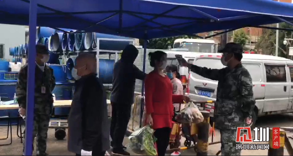 記者在現(xiàn)場看到,凡進入福田農批市場的經營戶、工作人員及市民街坊都需按要求佩戴口罩、監(jiān)測體溫正常后才能允許進入。此外,福田農批市場出入口處進行圍合管理并配備專人進行體溫測試,隨時對進入場所的人員進行體溫監(jiān)測。