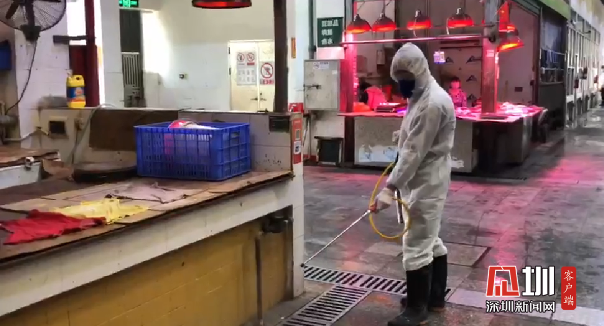 在現(xiàn)場,記者看到有2名消殺工作人員正在對市場的下水道進行消殺清潔?!澳壳皠訖z所負責福田區(qū)31個農批市場的消殺工作,我們從1月22號就開始對農貿市場進行消毒,每天消殺一次,消殺的濃度比之前有所增加,比平時多了一倍。消殺清潔工作對于疫情防控非常重要,效果也非常明顯?!眲訖z所工作人員說道。