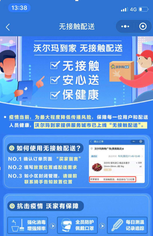 1、下單時備注選擇“無接觸配送服務”,盡量避免面對面接觸。