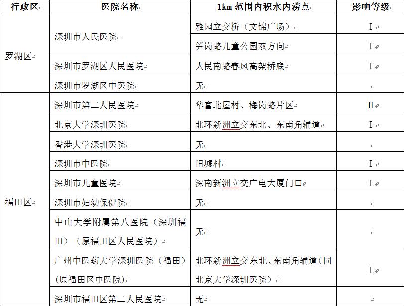 根據(jù)2019年度全市積水內(nèi)澇報(bào)送情況,深圳市水務(wù)局初步梳理出全市49家發(fā)熱門診(含1家新型冠狀病毒感染肺炎定點(diǎn)救治醫(yī)院)周邊積水內(nèi)澇點(diǎn)29處,并結(jié)合積水內(nèi)澇嚴(yán)重情況分為Ⅰ、Ⅱ、Ⅲ級(jí),詳見附件1《全市發(fā)熱門診及定點(diǎn)救治醫(yī)院周邊積水內(nèi)澇點(diǎn)初步梳理情況》。