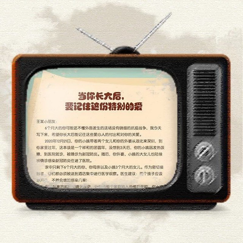 寶安區(qū)新安街道海富社區(qū)一名6個月大的孩子,因家里有人被確診為新型冠狀病毒感染的肺炎,被迫與家人分開進行醫(yī)學觀察。海富社區(qū)工作人員們對其悉心照顧,如今孩子已經(jīng)平安度過了14天的居家觀察期。海富社區(qū)特意為孩子留下一封情真意切的書信,希望孩子長大后,能記住這段特殊時期收獲的特殊的愛。