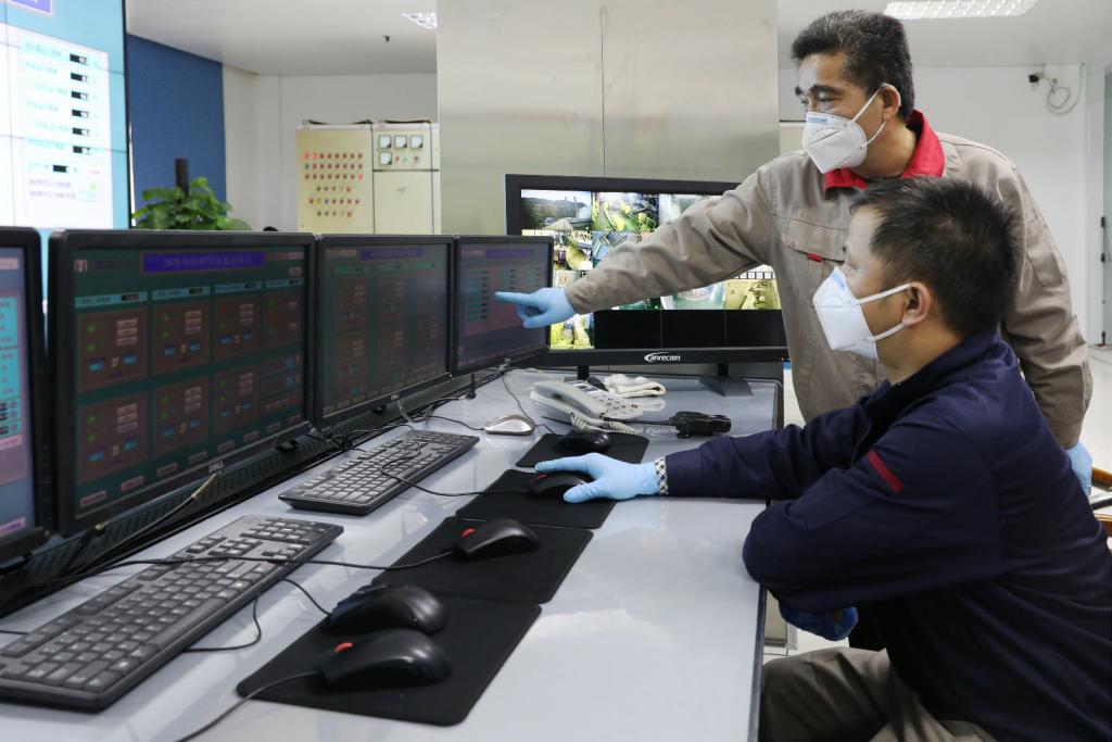 ▲工作人員通過(guò)實(shí)時(shí)影像監(jiān)測(cè)醫(yī)療廢物處置過(guò)程。