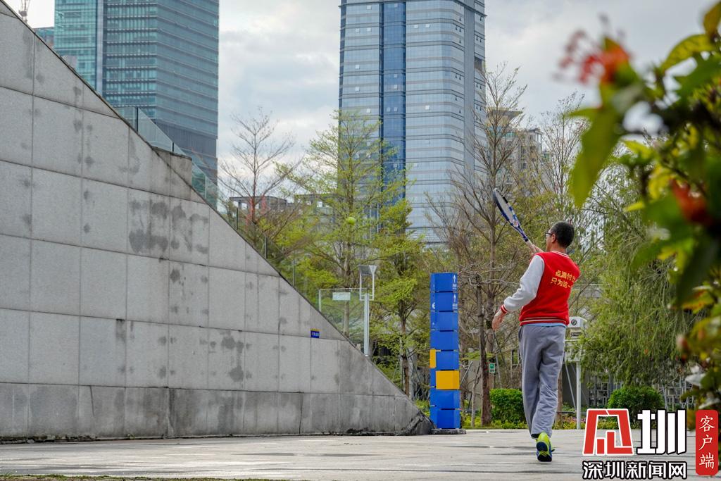 少年宮附近一位市民獨(dú)自對著墻壁練習(xí)網(wǎng)球