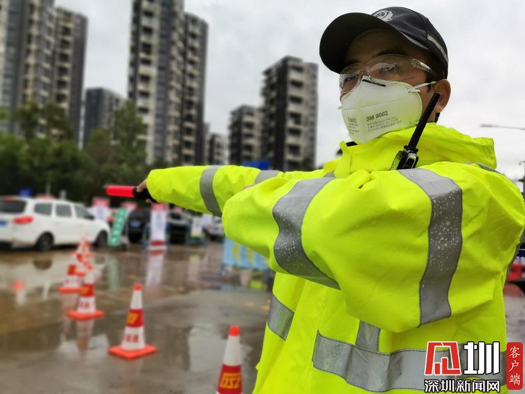 暴雨來臨,深圳交警民警在檢疫點安裝雨棚。