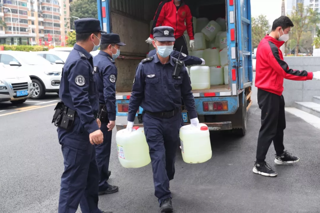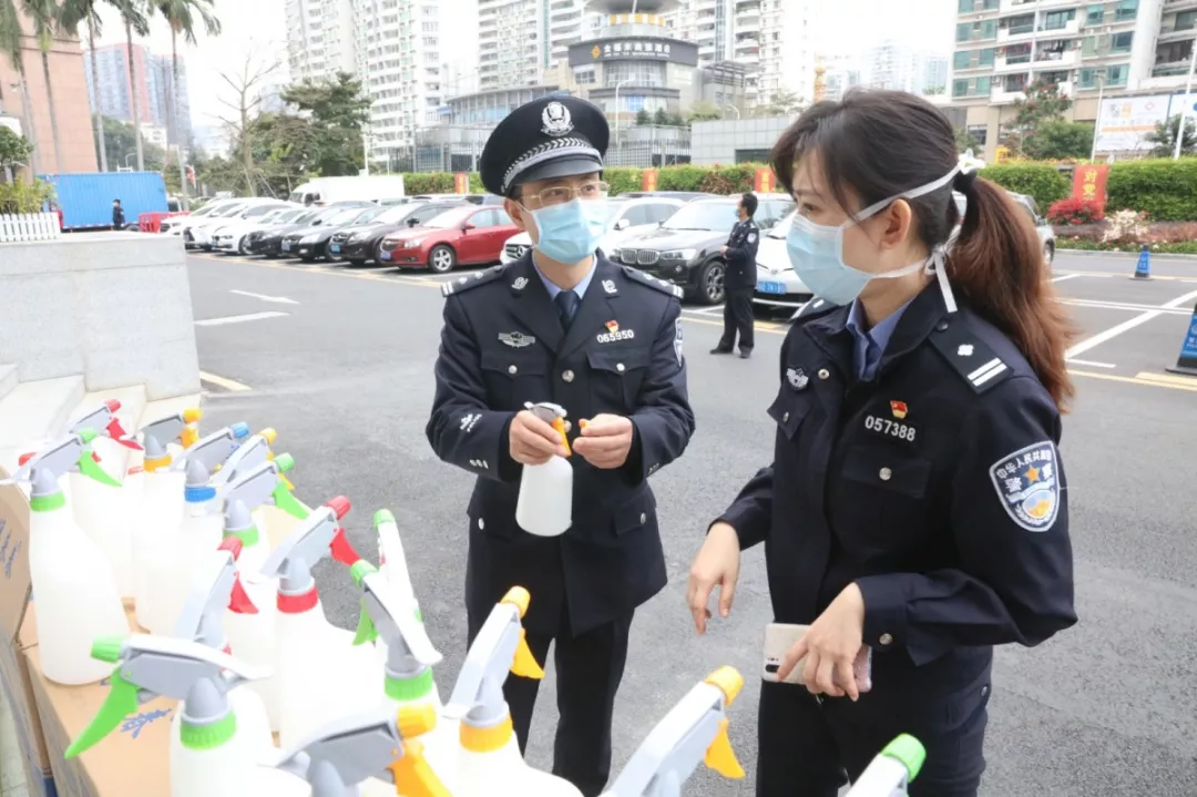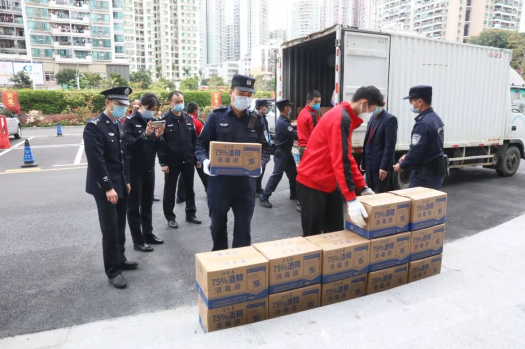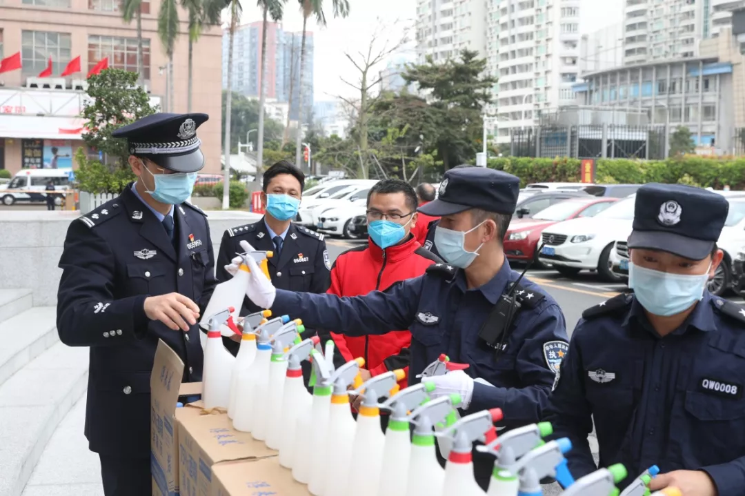 當(dāng)天16時許,愛心企業(yè)代表肖先生帶著50桶20公斤消毒液、480瓶消毒酒精、20個噴壺來到了福田分局,捐贈給了福田警方。福田分局黨委委員、政治處主任桂禮強代表分局接收捐贈抗疫物資,并對愛心企業(yè)表示感謝。