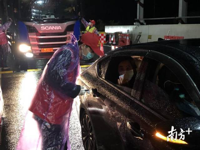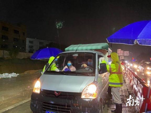 龍城街道黨員干部、工作人員與龍崗區(qū)退役軍人義工隊、龍崗交警組成防控隊伍,借助現(xiàn)場高速雨棚的遮擋,對進(jìn)深車輛一一進(jìn)行排查。