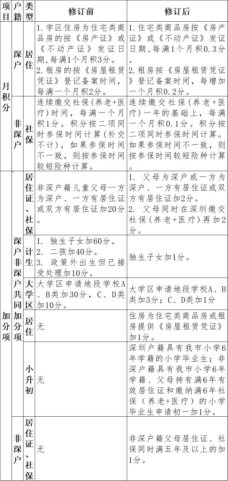 (1)深圳戶(hù)籍購(gòu)房從每滿(mǎn)1個(gè)月積3分,調(diào)整為積0.3分;租房從每滿(mǎn)1個(gè)月積2分,調(diào)整為0.2分。
