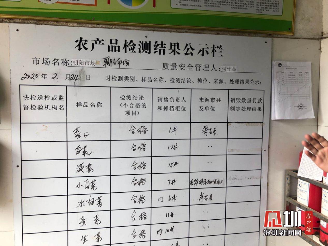 “朝陽肉菜市場從2005年開始開辦,市場占地面積為2480平方米,建筑面積和經(jīng)營面積均為2220平方米,目前市場經(jīng)營攤檔共有82檔。市場附近有三個社區(qū),每天有將近兩萬居民都會來這個市場采購食材。市場設(shè)有農(nóng)殘檢測設(shè)施,每天都會對進貨的蔬菜進行農(nóng)殘檢測并公示?!笔袌鲐?fù)責(zé)人說道。