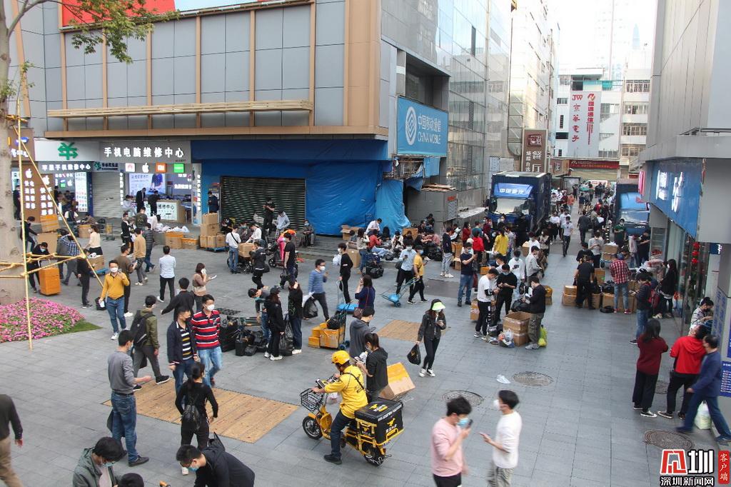 華強北電子商業(yè)街很多商家在拖運貨物。