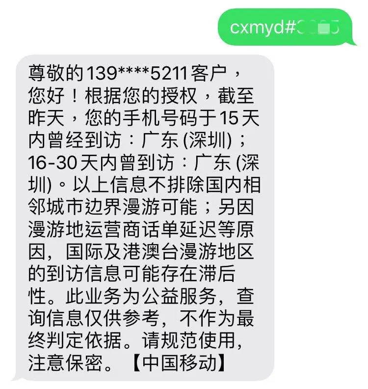 編寫(xiě)CXMYD,發(fā)送到10086,再依據(jù)回復(fù)短信輸入身份證后四位可查詢過(guò)去一個(gè)月內(nèi)去過(guò)的省和直轄市(無(wú)地市)。每人免費(fèi)一天查詢10次