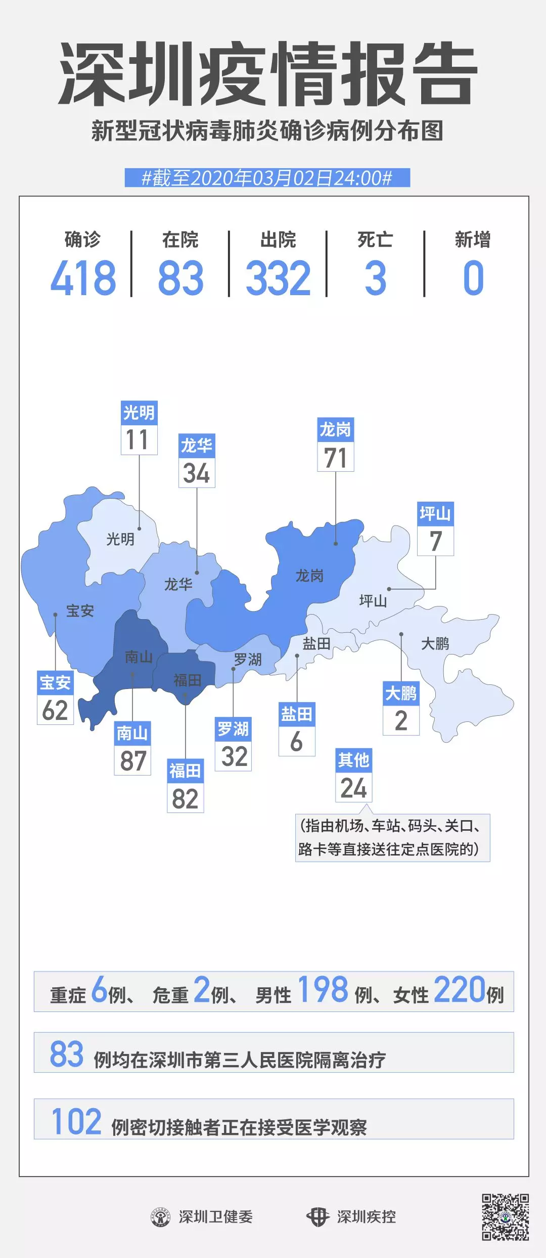 深圳“0”新增!累計(jì)418例,在院83例(截至3月2日)