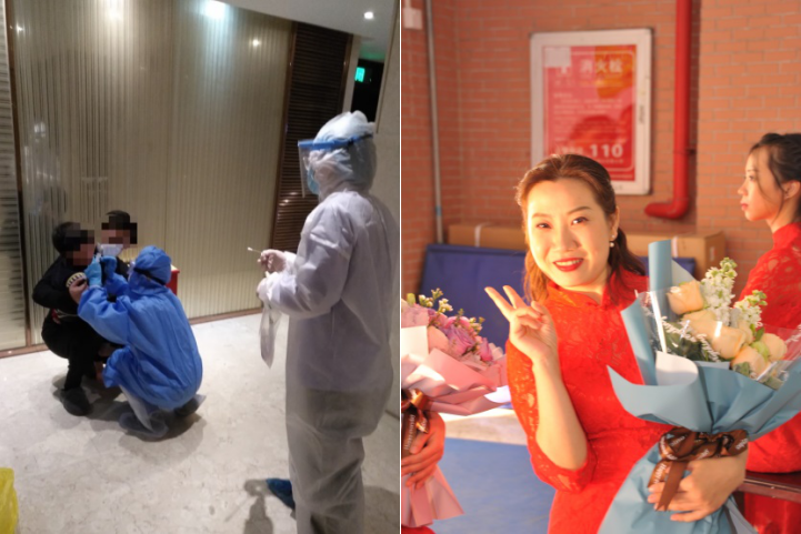 張家琪,新港社康中心全科醫(yī)生,2月10日是其早早選定的結(jié)婚日子,本該是穿上婚紗成為眾人矚目的新娘子,現(xiàn)實是一身隔離衣,作為社區(qū)疫情防控成員穿梭在大街小巷,腳起泡、衣服濕透是常有的事,隔天照常上班,小小的身體似乎有用不完的能量。疫情至今共核查近300人次,協(xié)助轉(zhuǎn)運、協(xié)助核酸檢測共計100多人。